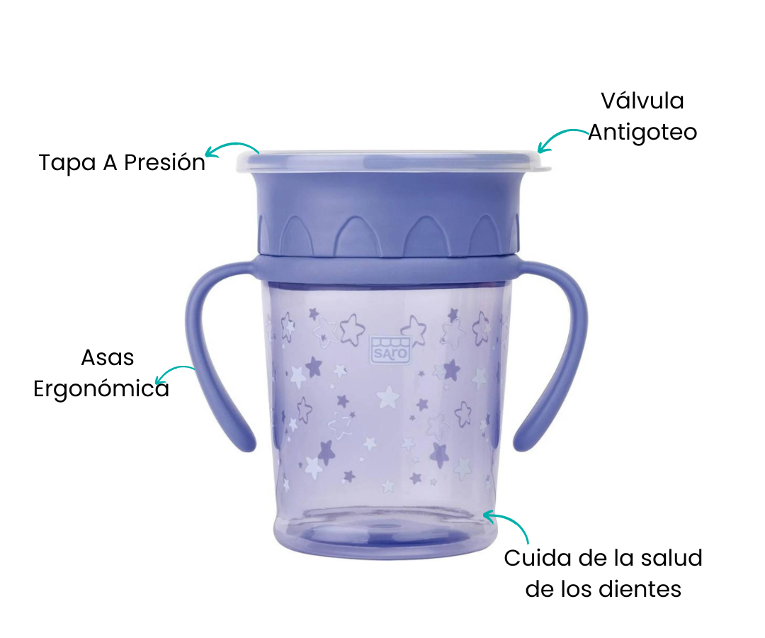 Descubre la revolución en vasos para bebés con el diseño de 360 grados. Con este innovador vaso, tu bebé puede beber sin preocupaciones, ya que puede hacerlo desde cualquier punto del borde sin derramar ni una sola gota. Su diseño único garantiza una experiencia sin complicaciones tanto para ti como para tu pequeño. Olvídate de los derrames y disfruta de momentos tranquilos y limpios durante la hora de beber.