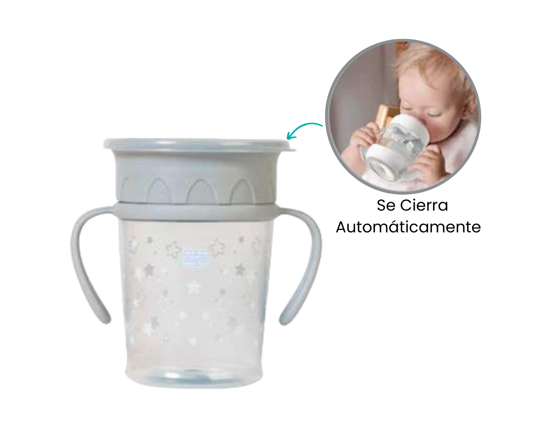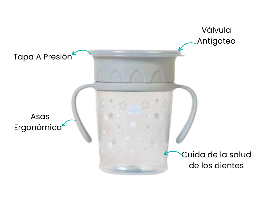 Descubre la revolución en vasos para bebés con el diseño de 360 grados. Con este innovador vaso, tu bebé puede beber sin preocupaciones, ya que puede hacerlo desde cualquier punto del borde sin derramar ni una sola gota. Su diseño único garantiza una experiencia sin complicaciones tanto para ti como para tu pequeño. Olvídate de los derrames y disfruta de momentos tranquilos y limpios durante la hora de beber.