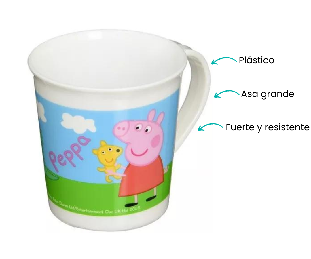Descubre la magia a la hora de beber con la encantadora taza de plástico de Peppa Pig, diseñada para ser la compañera perfecta en todas tus aventuras líquidas.