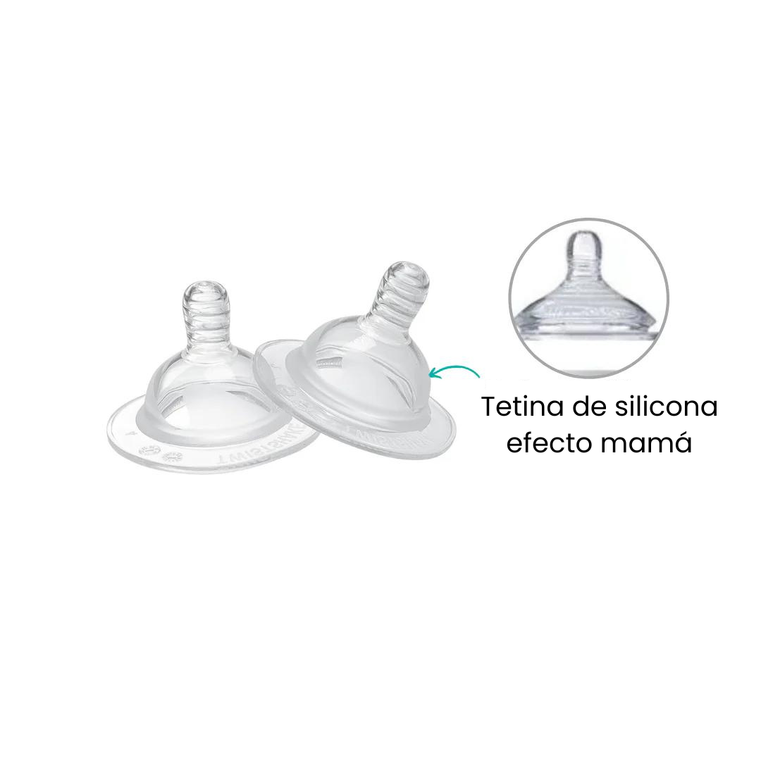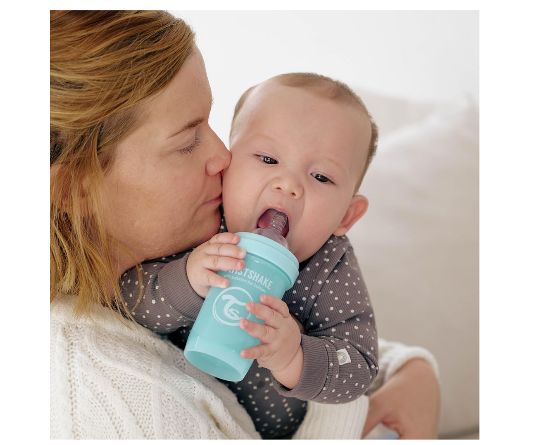 La tetina anticólicos de Twistshake, es flexible reproduce el pezón, permitiendo que el bebé mantenga su patrón natural de succión. La válvula anticólicos previene los cólicos y garantiza un flujo constante de leche.