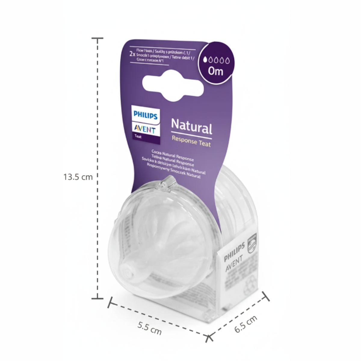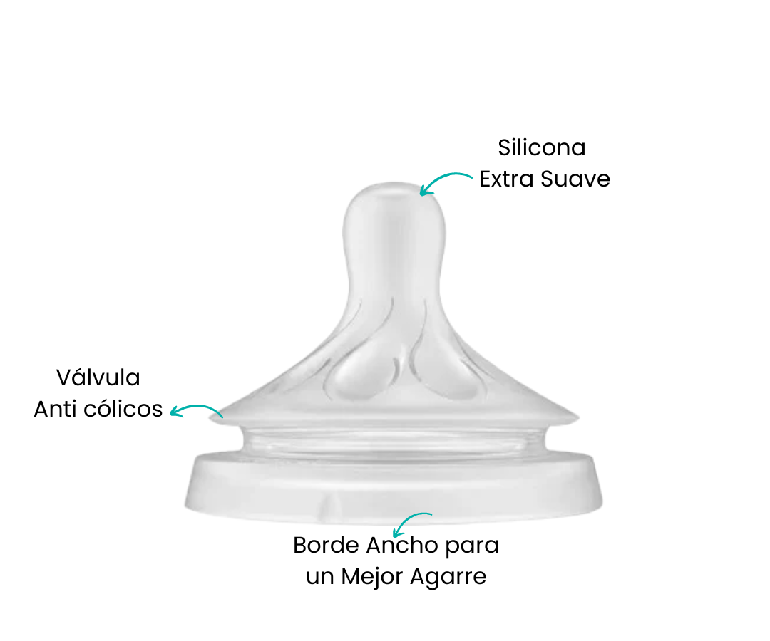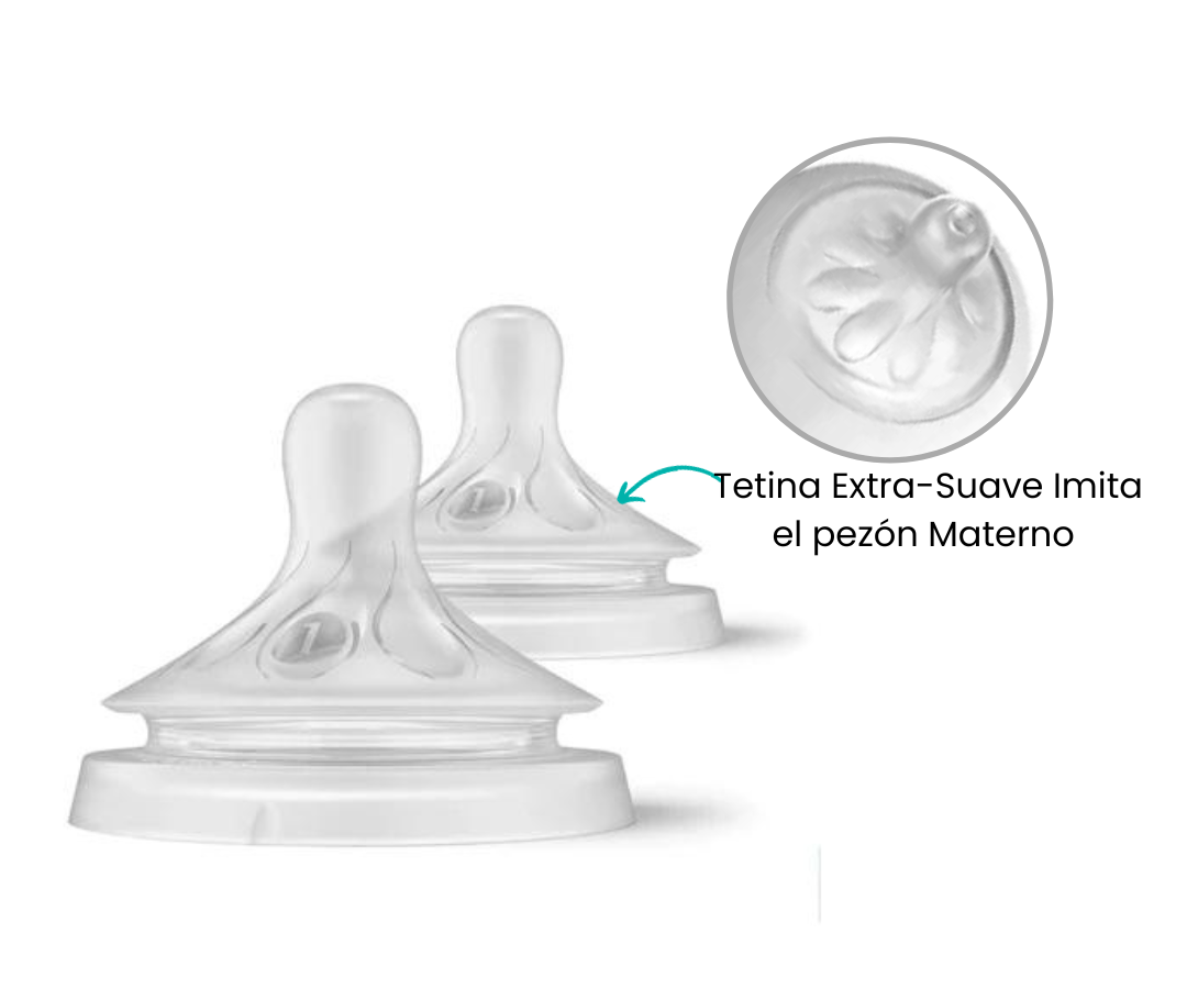 La tetina Natural Response de Philips Avent está diseñada para adaptarse al ritmo de succión, deglución y respiración de cada bebé, imitando de forma fiel la experiencia del pecho materno. Su abertura inteligente libera la leche solo cuando el bebé succiona activamente, deteniendo el flujo cuando hace pausas para tragar o respirar. Así, el pequeño puede alimentarse a su propio ritmo, con la misma naturalidad y control que durante la lactancia.