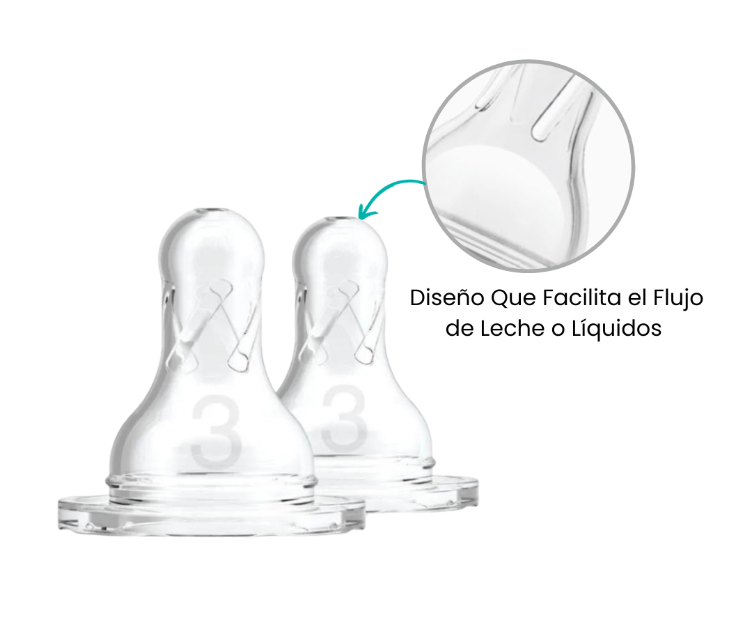 Descubre las tetinas Nivel 3 de Dr. Brown's, con boca ancha y fabricadas en 100% silicona premium para una experiencia ultra suave. Gracias a su innovador sistema de ventilación interna patentado, eliminan el vacío y las burbujas de aire, minimizando cólicos, vómitos, eructos, reflujo y gases en bebés de 6 meses en adelante. Diseñadas para imitar la forma natural del seno materno, ofrecen la máxima comodidad durante la alimentación.