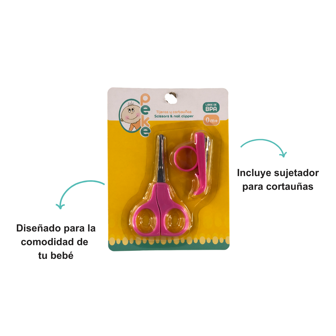 Tijeras con mango y corta uñas con soporte el cual proporciona comodidad y facilidad de uso, permitiéndote cuidar de las uñas de tu pequeño con confianza y destreza, ofreciendo bienestar para tu bebé.