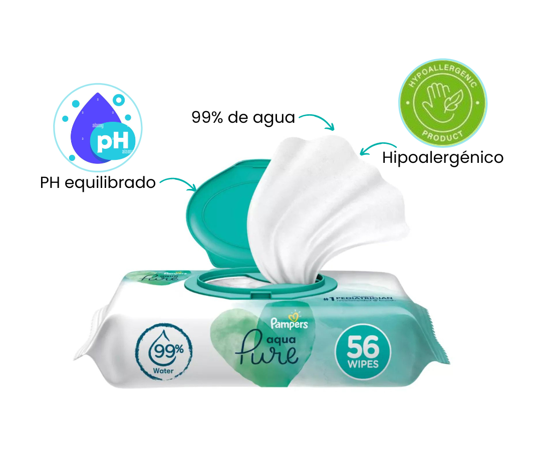 La fórmula avanzada contiene un 99% de agua pura, garantizando una limpieza suave y delicada para la piel sensible del bebé. El 1% restante de ingredientes está dermatológicamente probado para garantizar un pH equilibrado que proteja la piel de cualquier irritación.