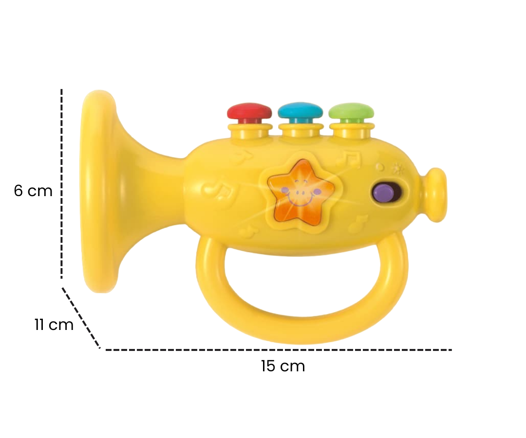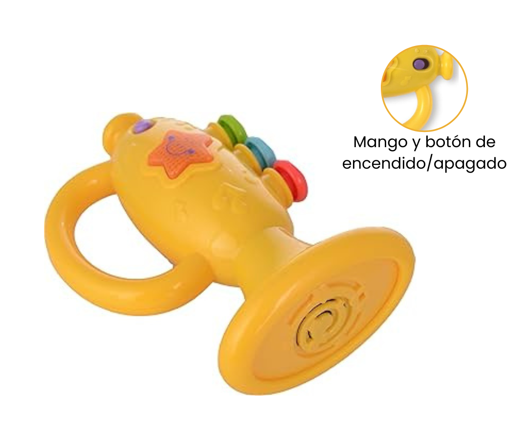 La trompeta iluminada redefine la experiencia de aprendizaje temprano al incorporar de manera innovadora botones de presión que no solo facilitan la identificación de colores, sino que también introducen a los pequeños en el fascinante mundo de las notas musicales.