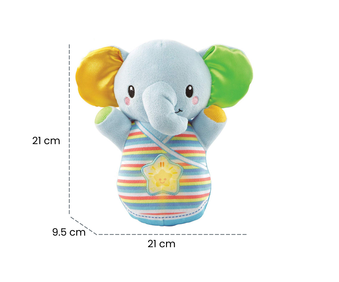 Presiona el botón con forma de estrella en su pancita y deja que la magia comience. Cada pulsación activa una sinfonía de sonidos reconfortantes que acompañan al bebé en su camino hacia el sueño. La suave luz que se ilumina al compás de las melodías crea un ambiente cálido y acogedor, proporcionando una experiencia visual y auditiva única.