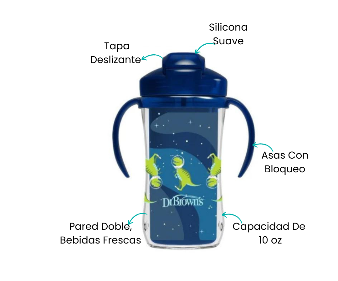 Este vaso está especialmente diseñado para las pequeñas manos de tu bebé, con un peso ligero y asas que se bloquean para un agarre seguro. A medida que tu pequeño crezca, puedes retirar las asas para que se adapte a su desarrollo y a la experiencia de beber más avanzada.