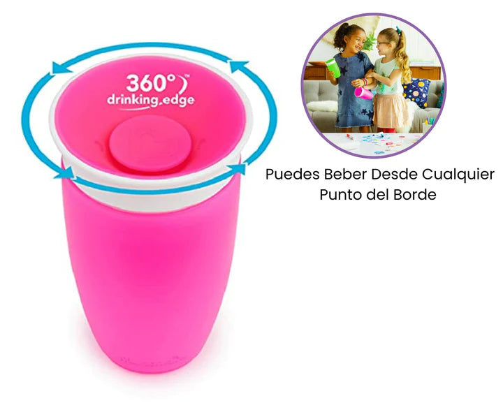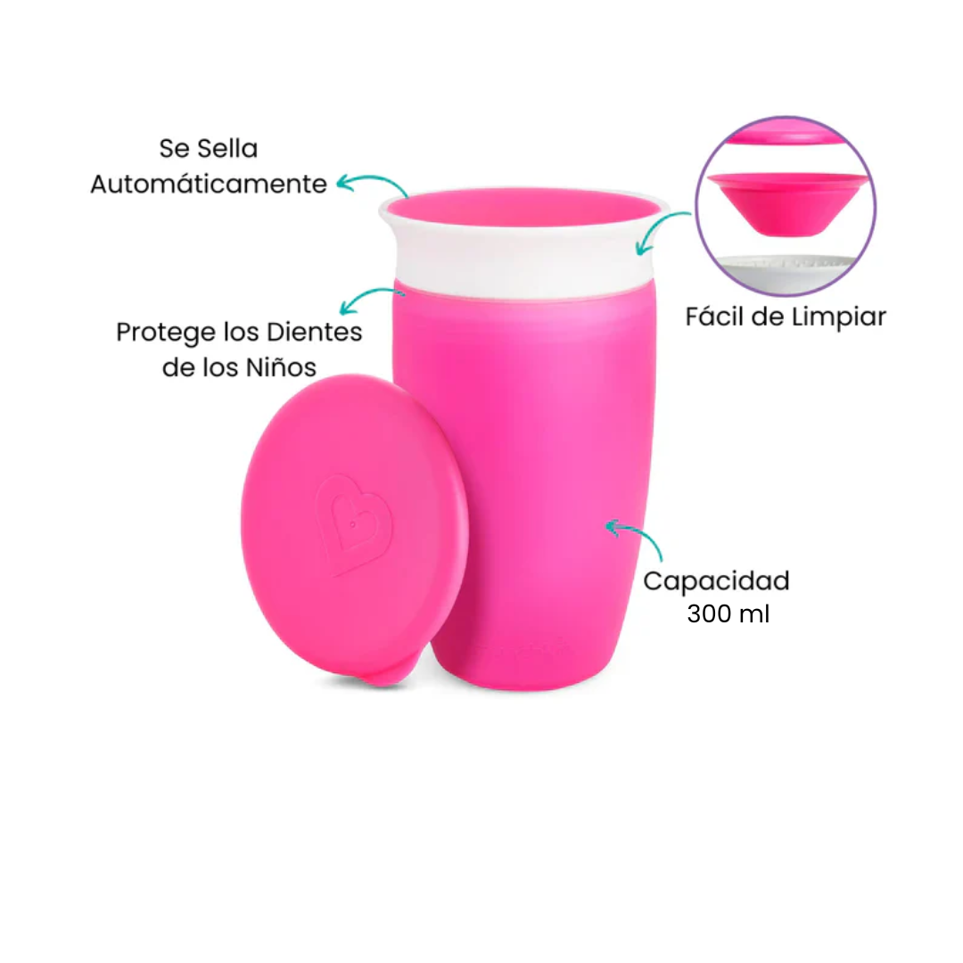 Su diseño innovador, hace que tu pequeño pueda beber desde cualquier punto del borde sin preocuparse por derrames inoportunos. La tecnología sin boquilla y la tapa incorporada hacen que beber sea una experiencia sencilla y sin complicaciones.