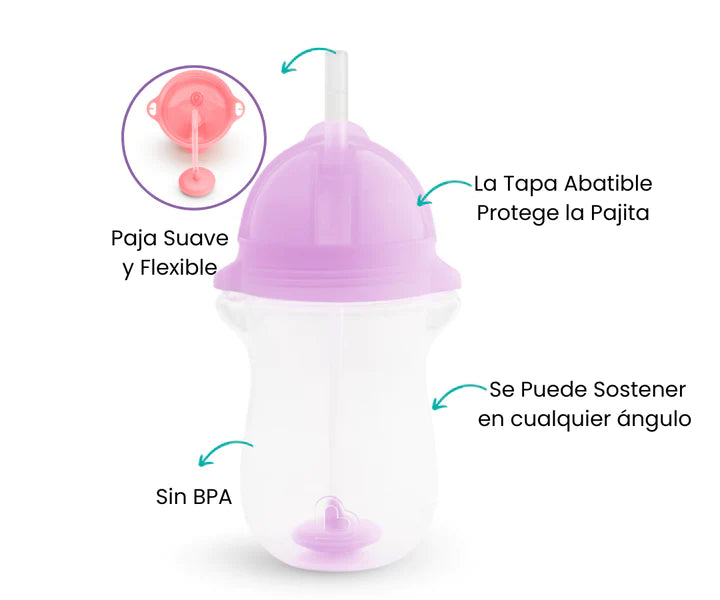 Descubre el vaso antiderrames con pajilla sin asas de 10 onzas de Munchkin , cuidadosamente diseñado para brindar comodidad y facilidad de uso a tu niño pequeño. Este producto representa la fusión perfecta entre dos mundos, permitiendo que tu hijo la sostenga de manera cómoda, como si fuera una botella, al tiempo que disfruta de la practicidad de beber a través de una pajita.