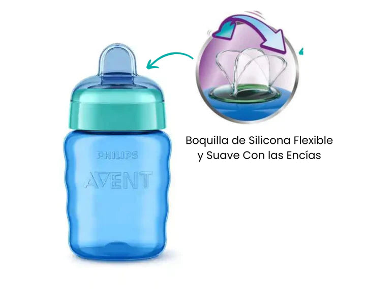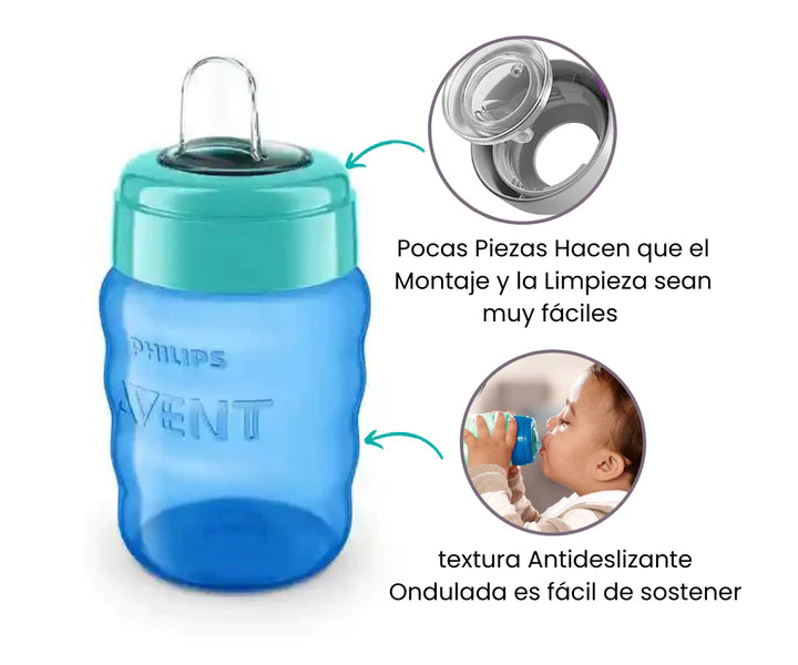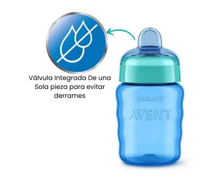 El vaso está equipado con una válvula antigoteo que evita derrames innecesarios. Esto es especialmente útil cuando los bebés están aprendiendo a beber por sí mismos, ya que reduce las posibilidades de desorden y desperdicio.