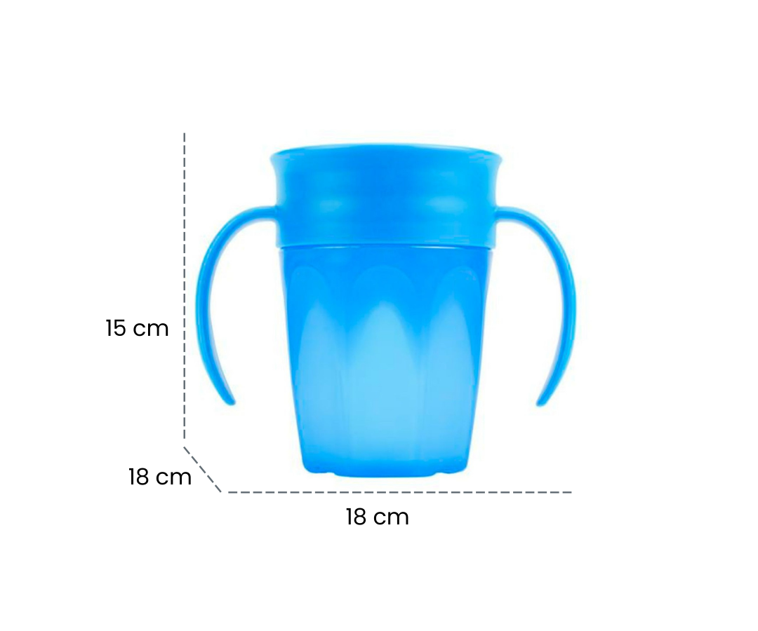 ¡Pues aquí está! El vaso 360° Dr. Brown's ha sido cuidadosamente diseñado con lados biselados que permiten un agarre cómodo y seguro para las manitas de tu pequeño aventurero.