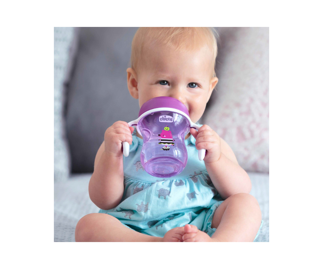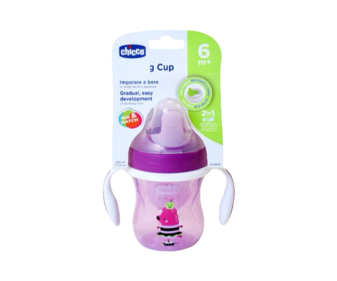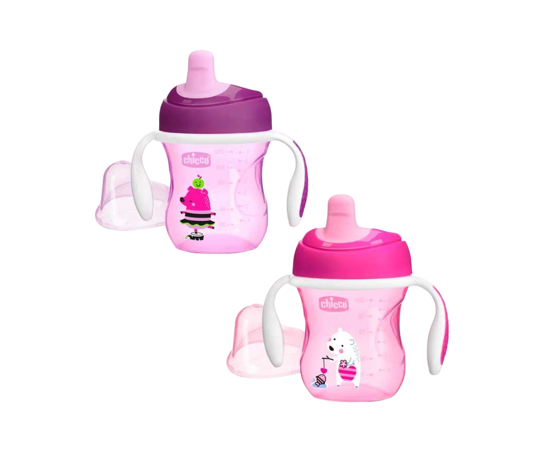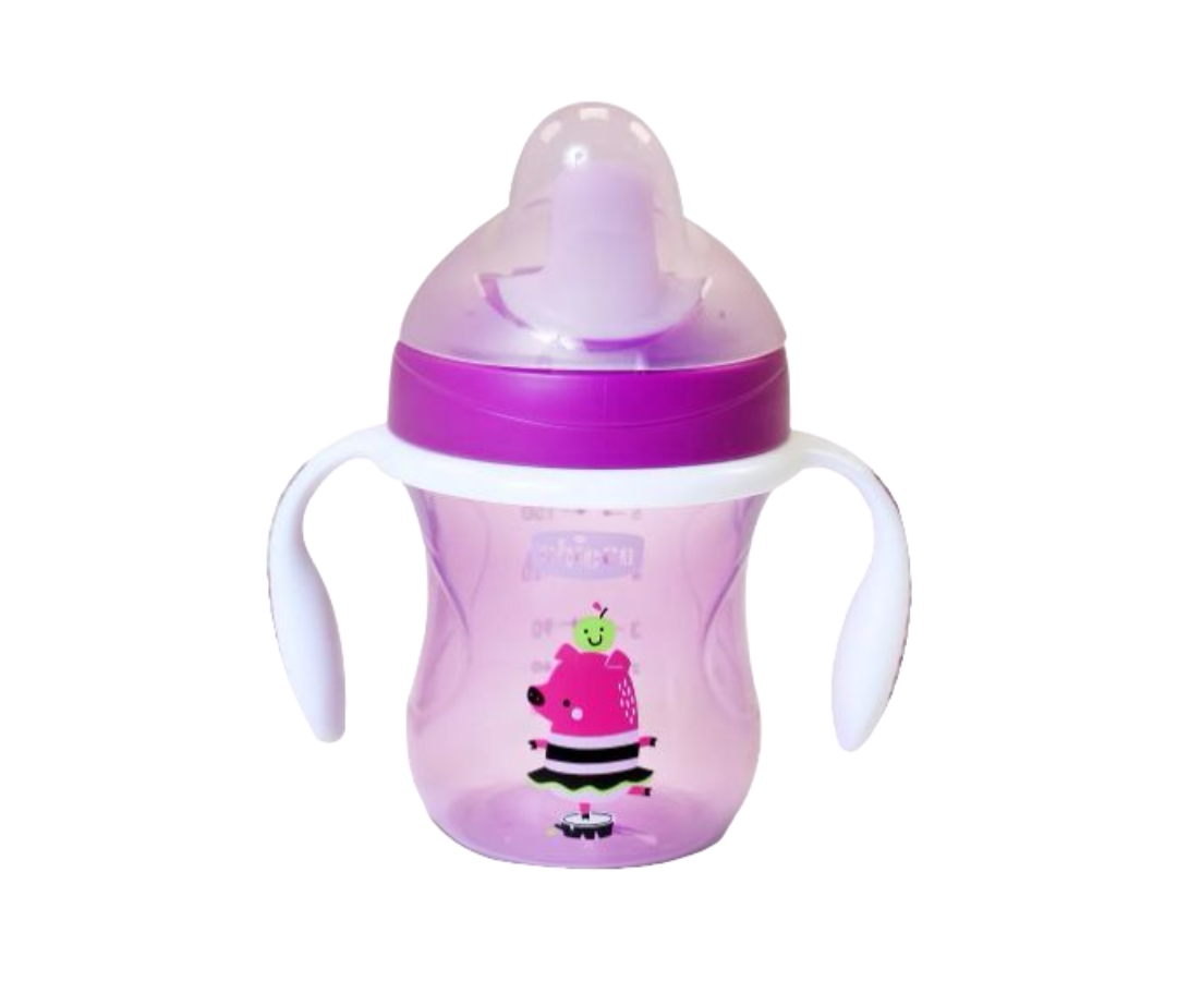 Este vaso ayuda a la transición del pecho o biberón al primer vaso, se presenta como un modelo a prueba de derrames con asas extraíbles que facilitan su sujeción. Además, la boquilla fomenta una postura adecuada del cuello al beber, promoviendo así el desarrollo saludable del pequeño.