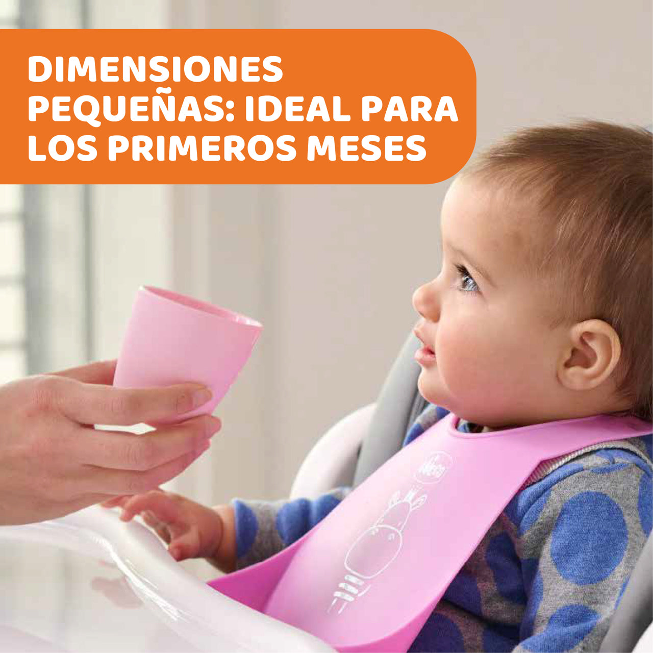 Ideal desde los primeros meses. Borde inclinado que facilita que los pequeños sorban en lugar de verter. Área de descanso para labios brillantes, para dar un estímulo sensorial al bebé.