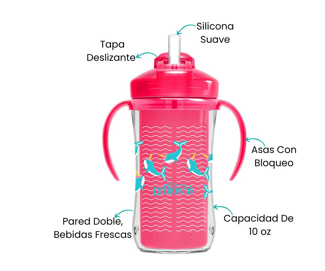 Con el sorbete antigoteo, olvídate de las manchas y los derrames. Además, es a prueba de mordidas para una mayor seguridad. La tapa protege el contenido y su sistema aislado mantiene las bebidas frías sin enfriar las manos de tu bebé. ¡Y con un diseño de peces la diversión está garantizada!