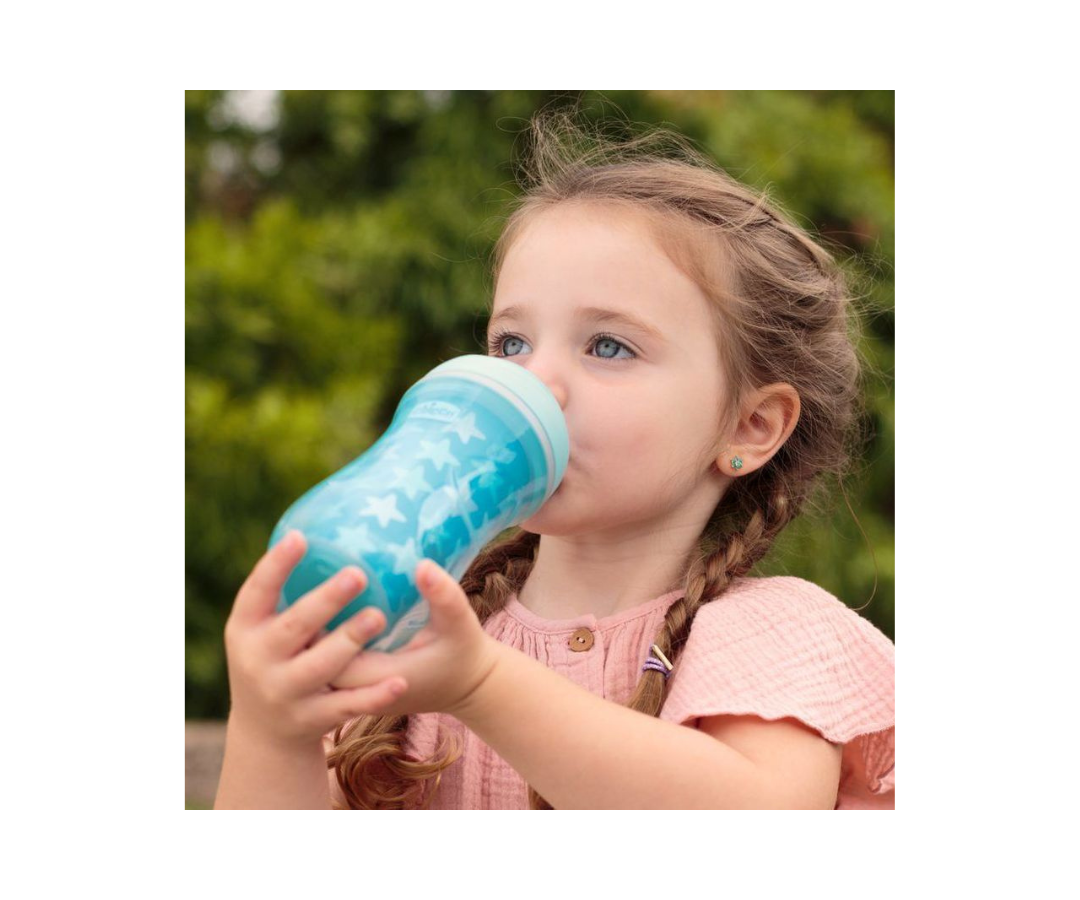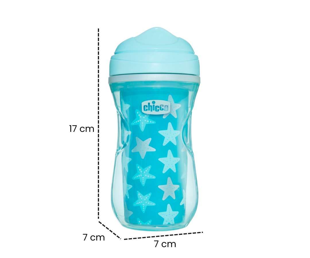 Facilita el proceso de transición para tu bebé hacia la independencia con el vaso de niño grande, diseñado ergonómicamente para fomentar un agarre seguro y autónomo. Fabricado con plástico libre de BPA y equipado con un popote de plástico.