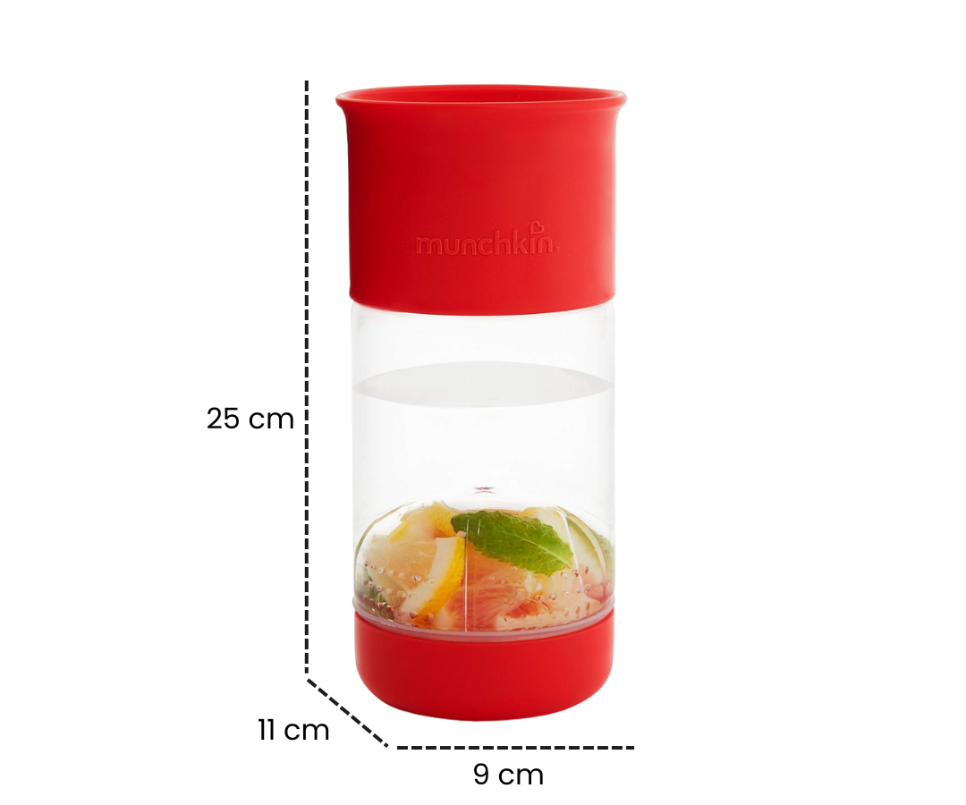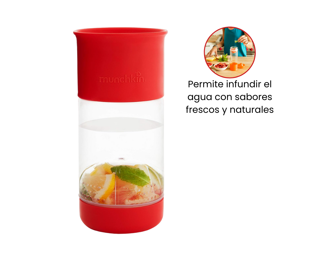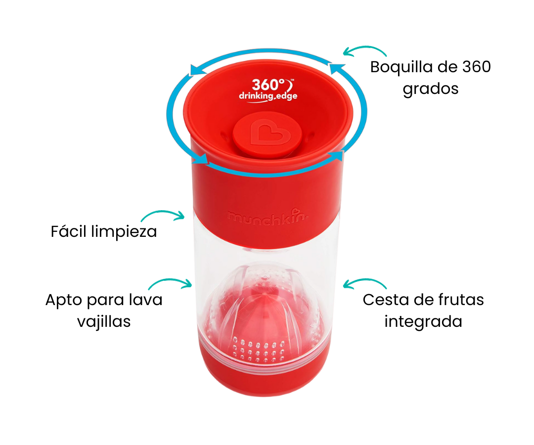 Introduzca a sus pequeños al mundo de la hidratación saludable con la taza para beber con infusión de frutas. Esta innovadora taza presenta un diseño sin boquilla de 360 grados, proporcionando una experiencia de bebida sin complicaciones y promoviendo un desarrollo oral saludable.