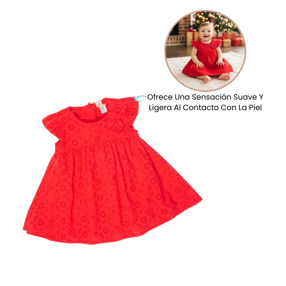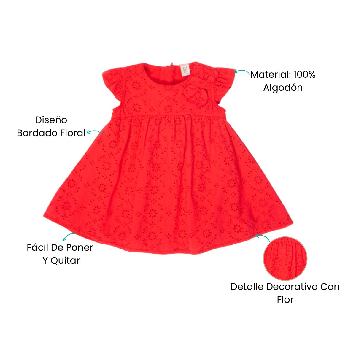 Este encantador vestido de algodón para bebé combina estilo, comodidad y un toque de ternura. Su diseño en color vibrante y delicado bordado floral lo hacen ideal para ocasiones especiales, celebraciones o simplemente para dar un aire alegre a los días cotidianos.