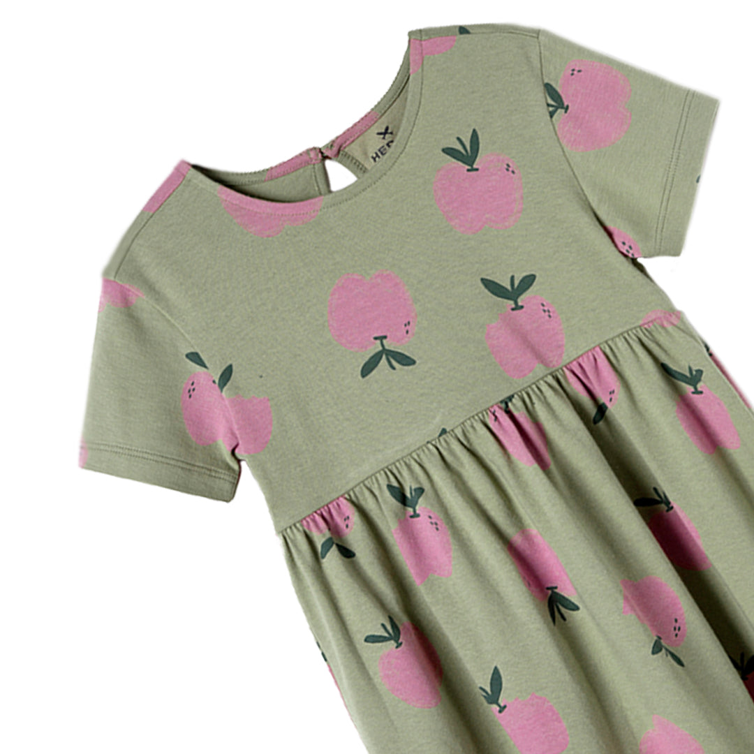 Vestido básico de manga corta estampado, delicado y lindo! Tiene abertura trasera en forma de lágrima y etiqueta ornamental en el bajo. Confeccionado en tejido 100% algodón.