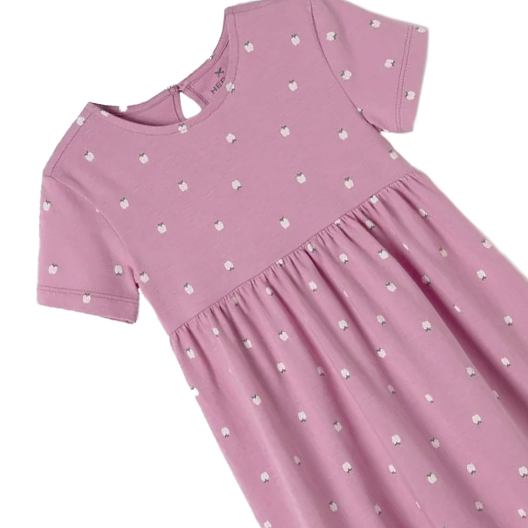 Vestido básico de manga corta estampado, delicado y lindo! Tiene abertura trasera en forma de lágrima y etiqueta ornamental en el bajo. Confeccionado en tejido 100% algodón.
